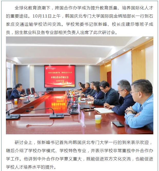 合作促发展 携手共进步 ——石家庄交通运输学校召开中韩合作办学研讨会