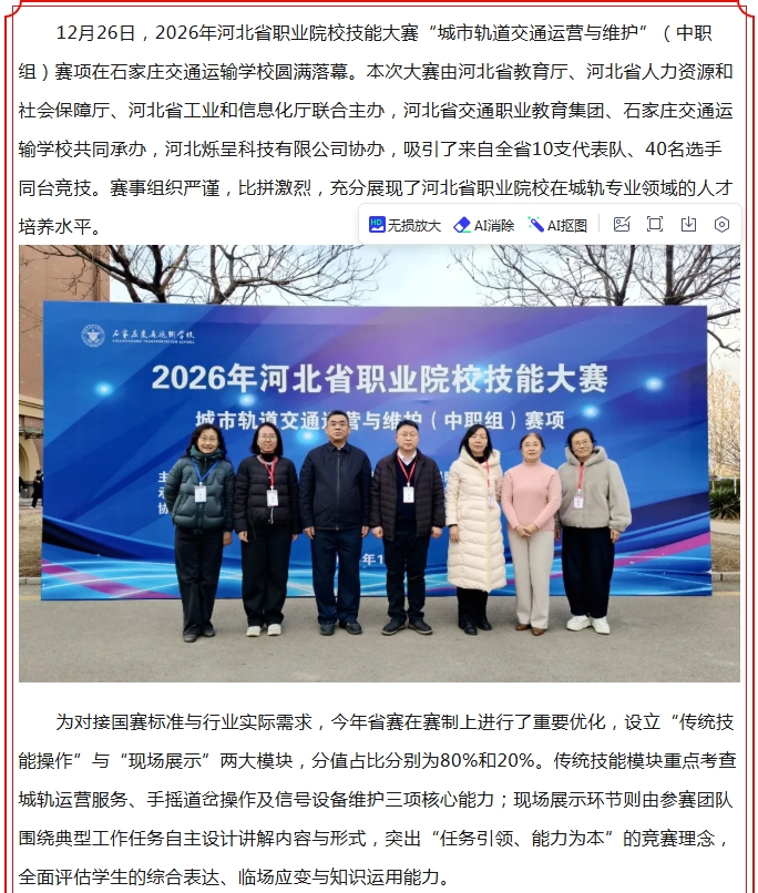 【喜报】石家庄交通运输学校成功承办河北省“城市轨道交通运营与维护”(中职组)赛项并斩获佳绩
