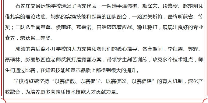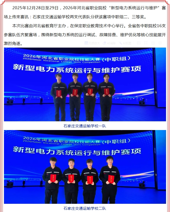 【喜报】石家庄交通运输学校学子在河北省职业院校“新型电力系统运行与维护”赛项中喜获佳绩