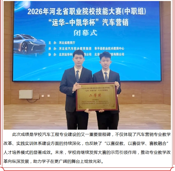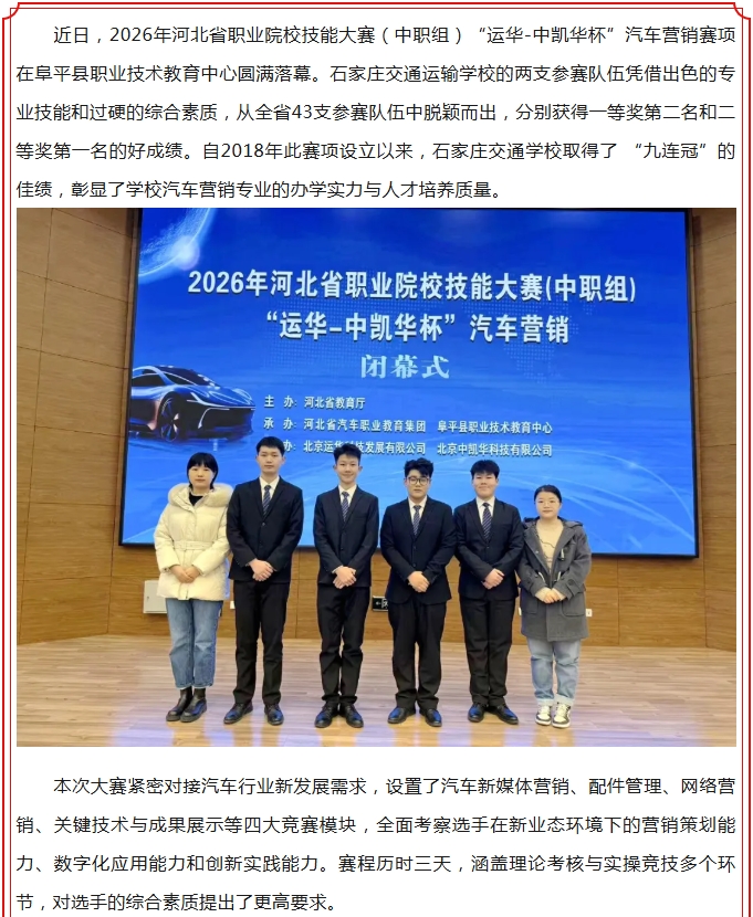 【喜报】石家庄交通运输学校在2026年河北省职业院校技能大赛汽车营销赛项中再获佳绩