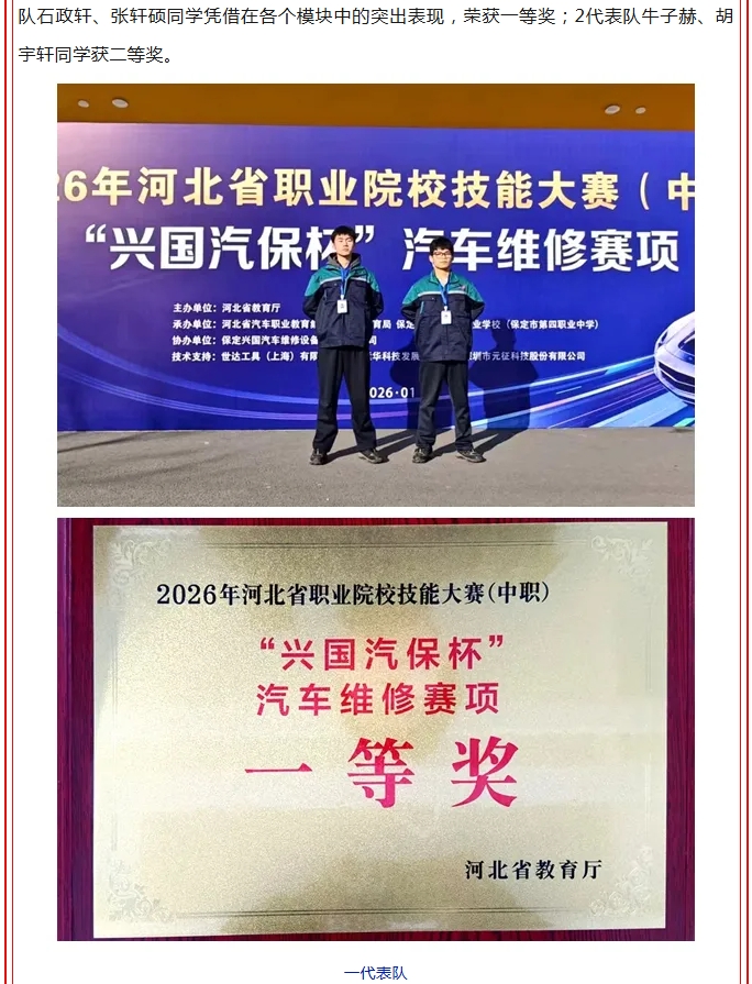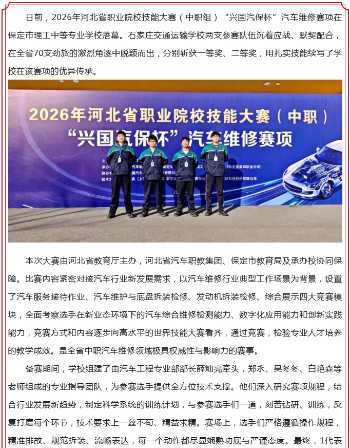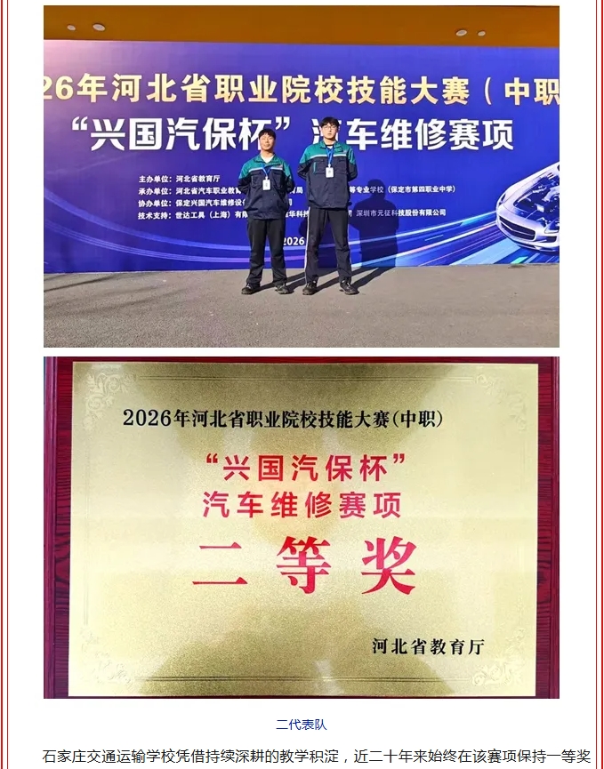 【喜报】技能逐光续荣光 匠心筑梦育人才——石家庄交通运输学校在省中职汽车维修技能大赛再获佳绩