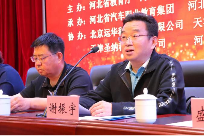 大赛组委会办公室成员,河北省职业技术教育研究所研究员谢振宇代表组委会讲话,他对参赛的师生表示祝贺,对承办校的辛勤付出表示感谢,并希望参赛学校在技能大赛的引领下不断创新进取,加强与企业的联系,为经济社会发展培养多层次高质量的实用型技能人才。