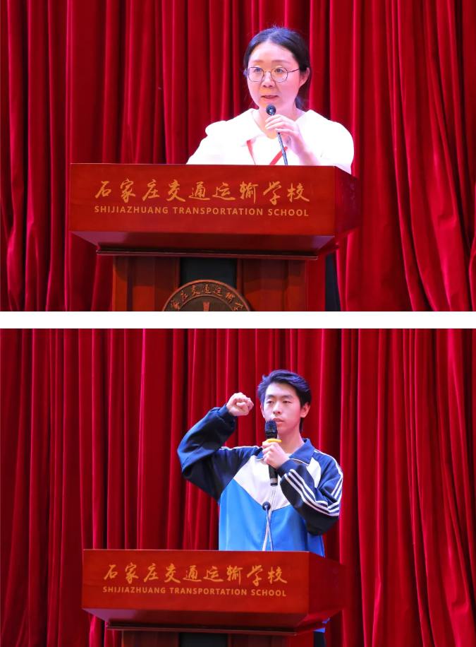 北京电子科技职业学院李悦怡老师、石家庄交通运输学校学生焦子钰分别作为裁判员代表、参赛选手代表庄重宣誓。