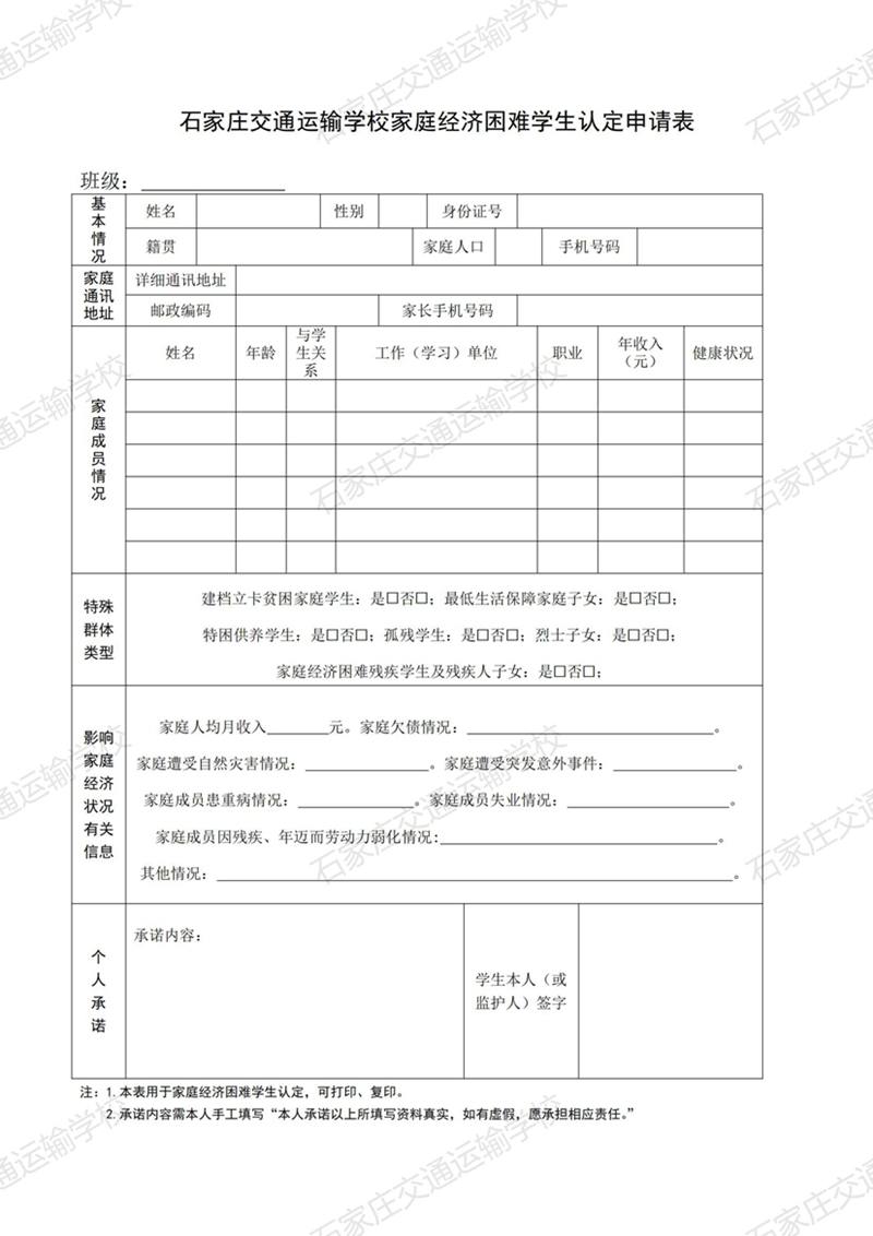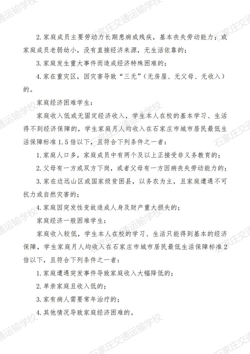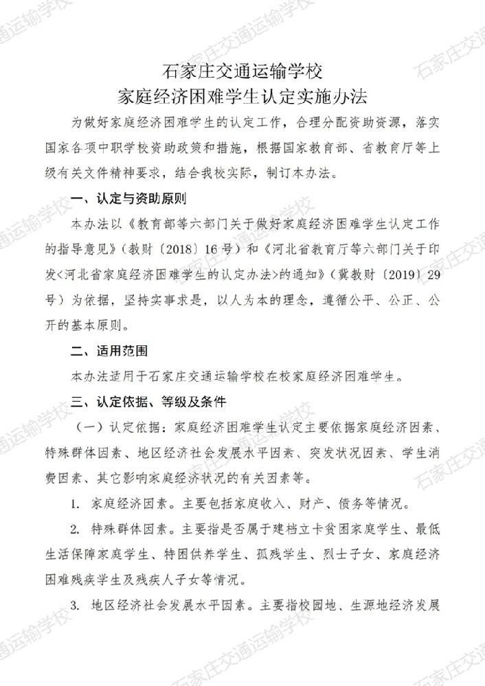 石家庄交通运输学校家庭经济困难学生认定实施办法
