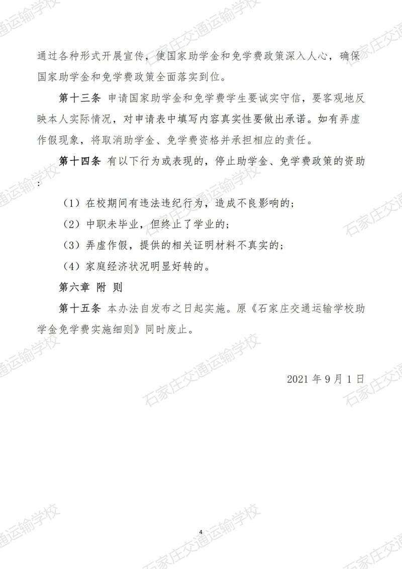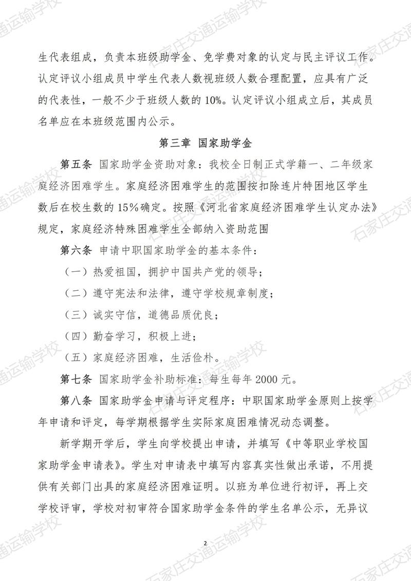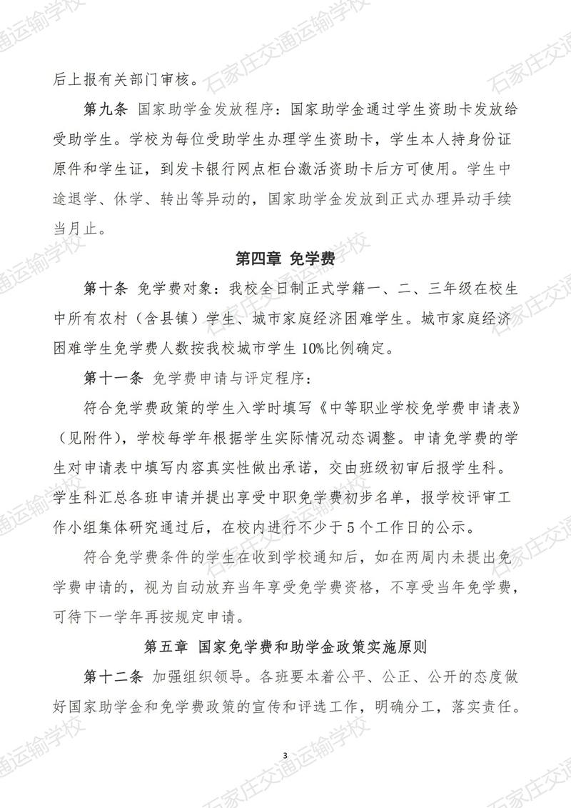 石家庄交通运输学校国家助学金和免学费政策实施办法2021