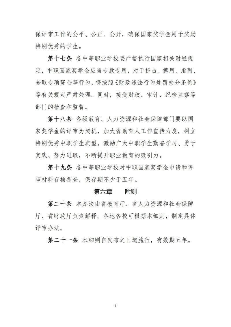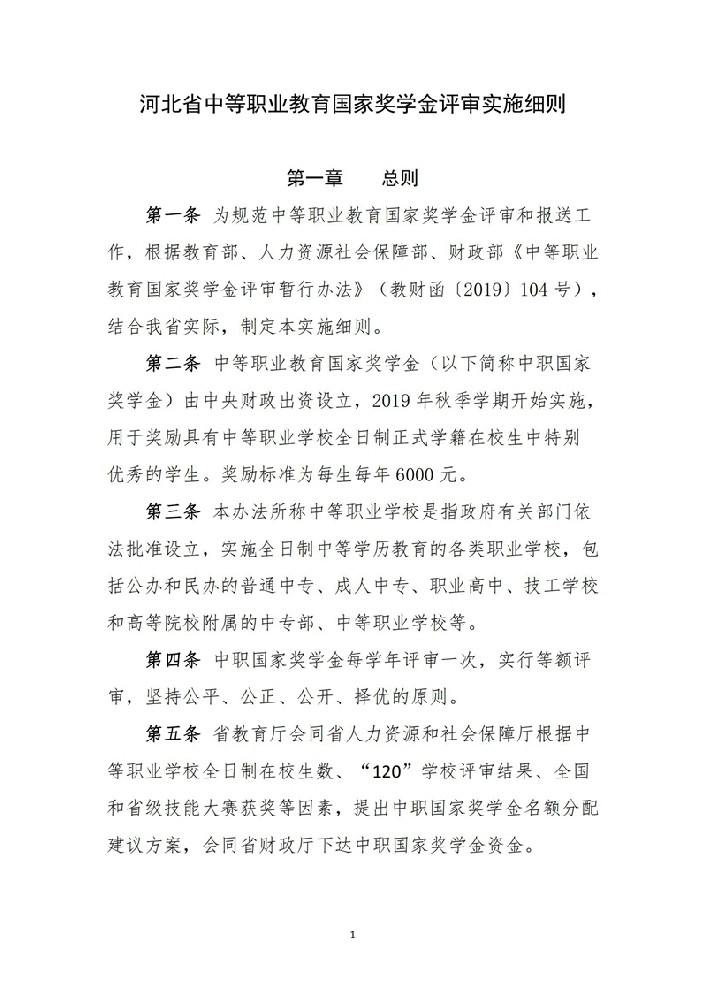 河北省中等职业教育国家奖学金评审实施细则