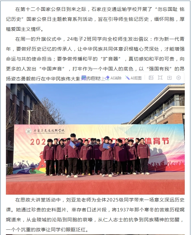 勿忘国耻 铭记历史——石家庄交通运输学校开展国家公祭日主题教育活动