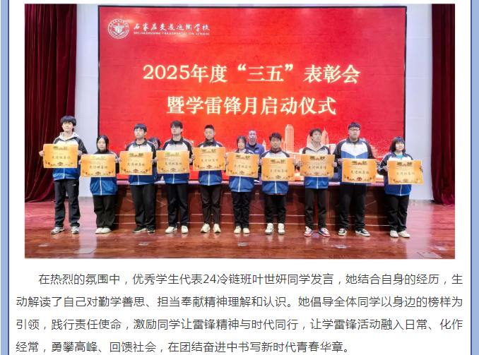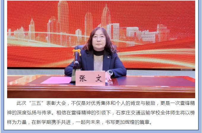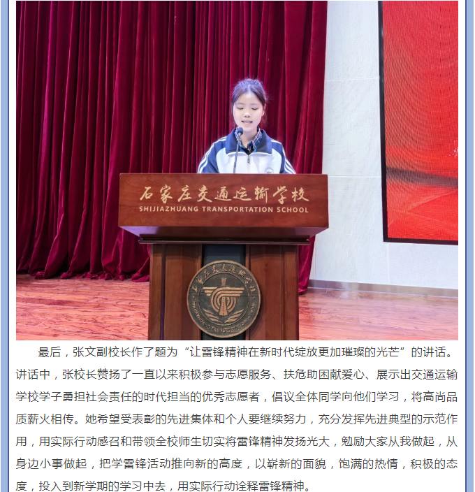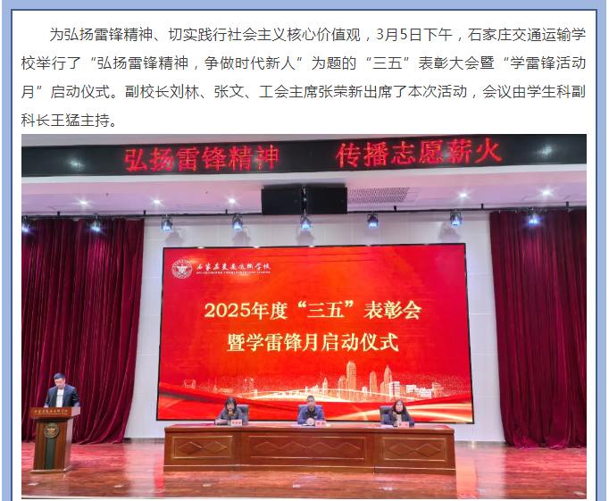 弘扬雷锋精神 争做时代新人——石家庄交通运输学校举行“三五”表彰大会暨“学雷锋活动月”启动仪式