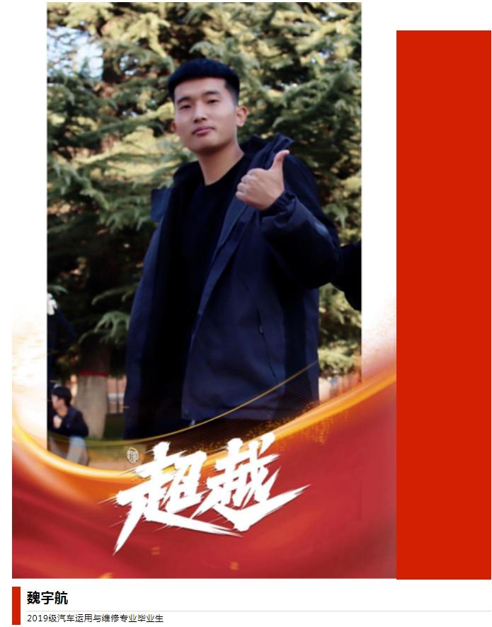 魏宇航,石家庄交通运输学校2019届汽车运用与维修专业毕业生,现任河北金士顿科技研发中心实验室副主任。