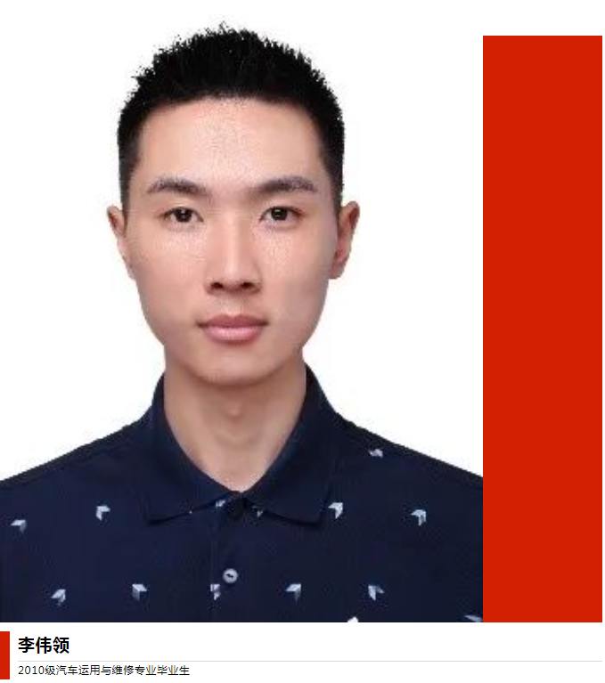 李伟领,2010级汽车运用与维修专业学生,2013年6月毕业。期间任校学生会副主席,并获省级三好学生。之后继续在国家开放大学、沈阳工业大学学习深造,完成了本科学历。并获阿里云ACP云计算工程师认证。