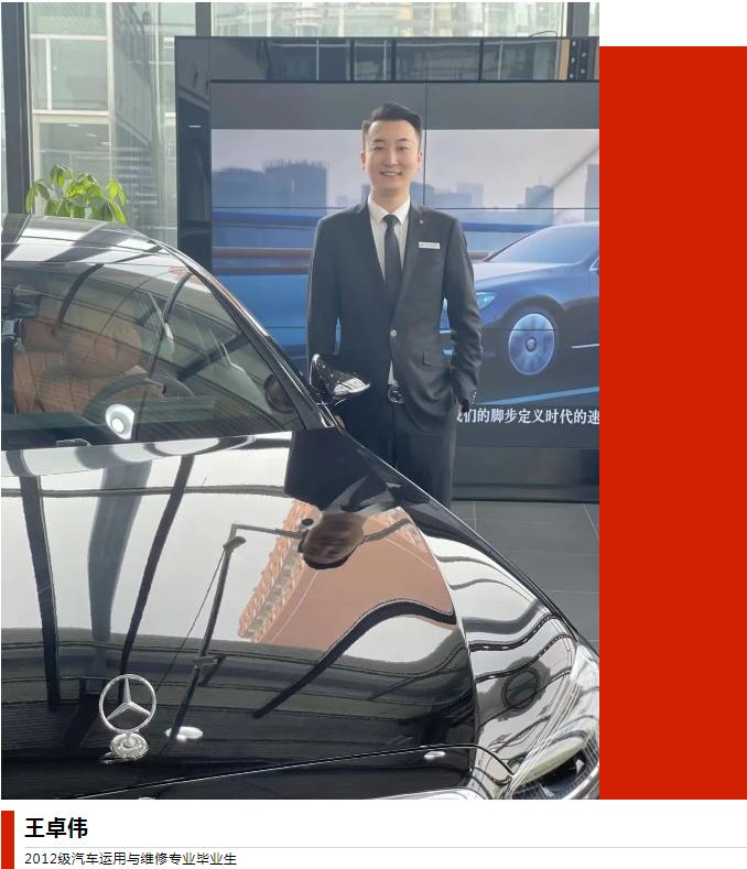 王卓伟,2012届汽车运用与维修专业毕业生,现任职河北盛世之星奔驰销售顾问。