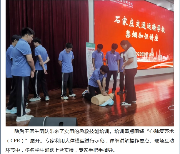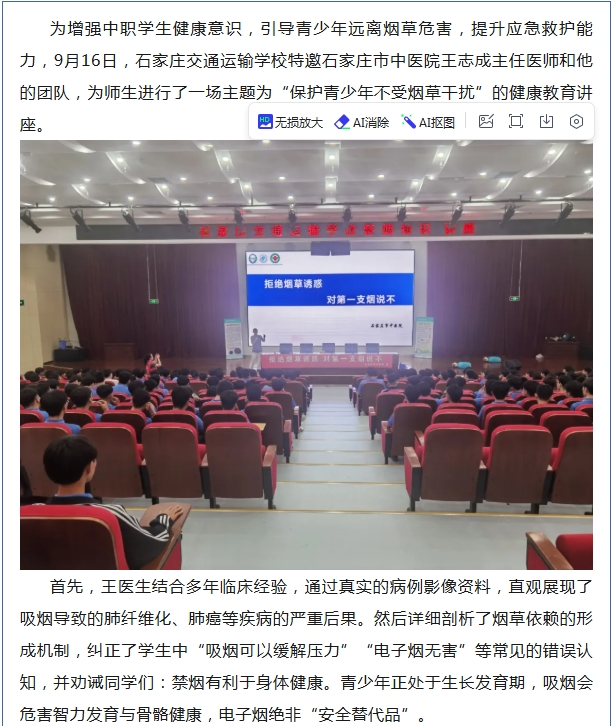 珍爱生命 拒绝烟草——石家庄交通运输学校开展禁烟专题讲座