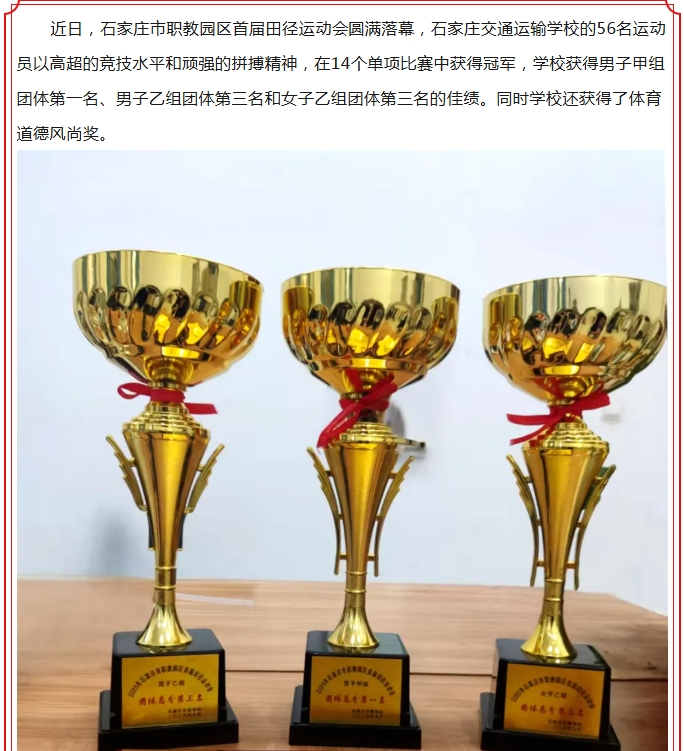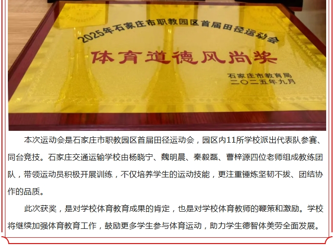 【喜报】石家庄交通运输学校代表队在职教园区首届田径运动会中斩获佳绩