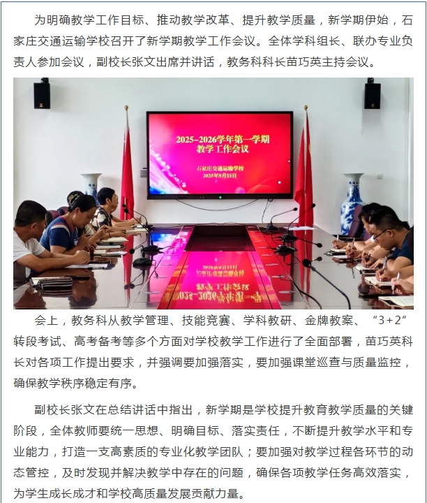 石家庄交通运输学校召开新学期教学工作会议