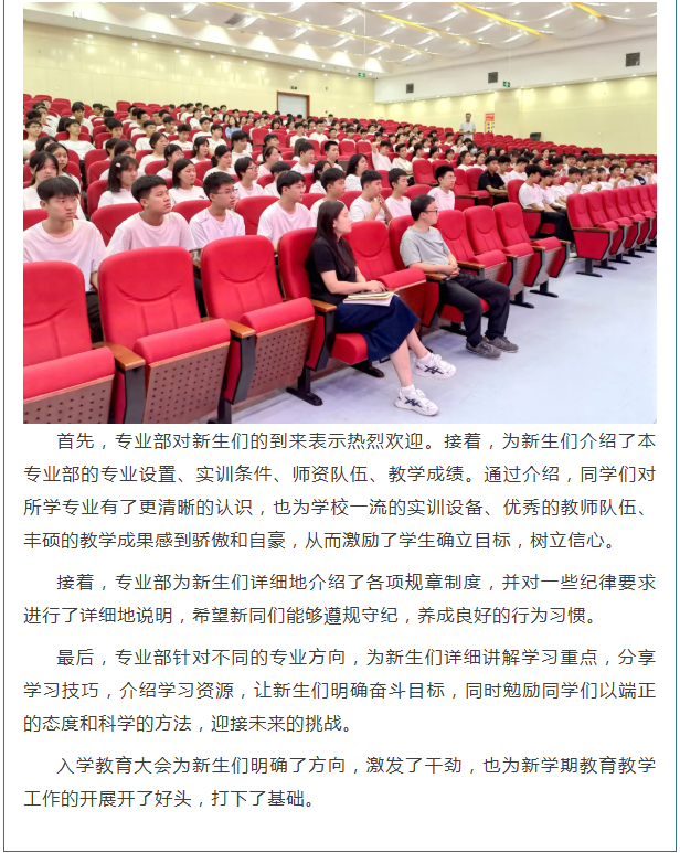 【专业部快讯】石家庄交通运输学校交通工程专业部召开2025级新生入学教育大会