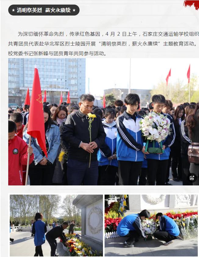 清明祭英烈,薪火永赓续——石家庄交通运输学校开展清明祭奠活动
