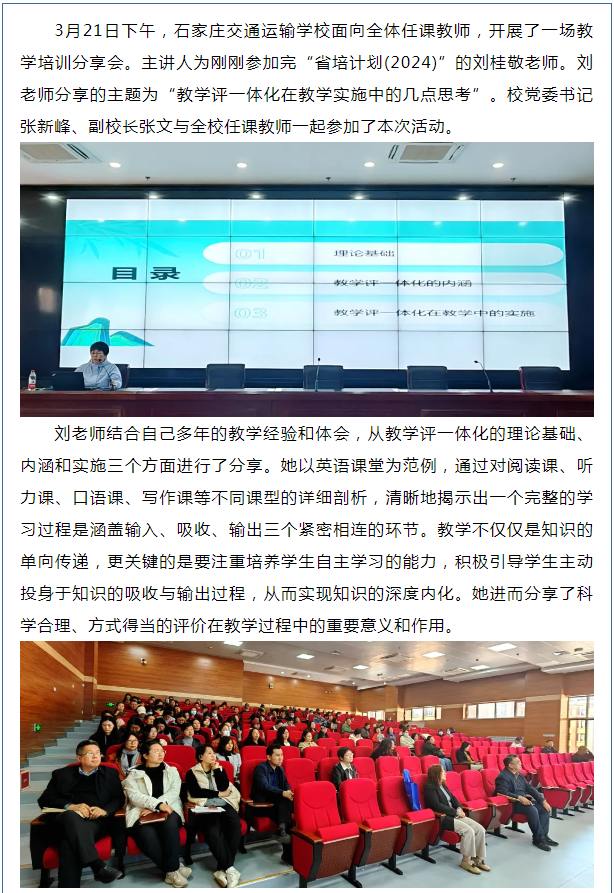 教·学·评三位一体赋能高效课堂|石家庄交通运输学校教学培训分享会