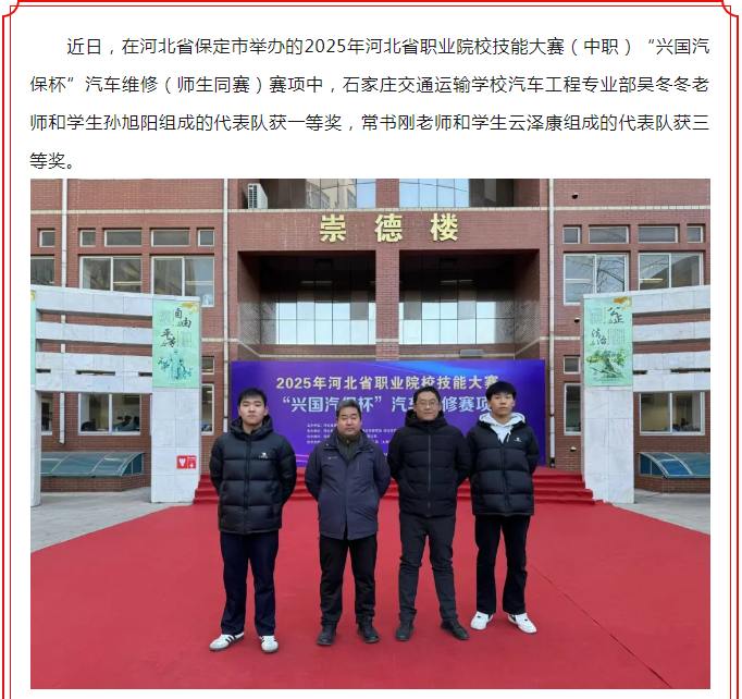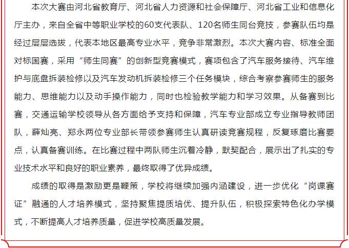 【喜报】石家庄交通运输学校在省职业院校技能大赛汽车维修赛项(师生同赛)中获一、三等奖