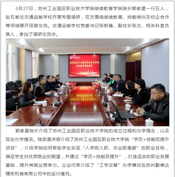 南北职校同协作 共话发展新篇章——苏州工业园区职业技术学院来访开展校际调研