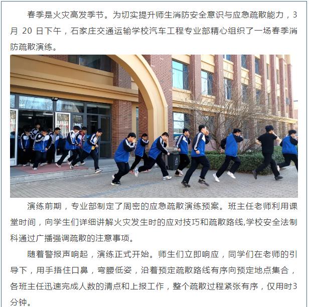 【专业部快讯】汽车工程专业部开展春季消防疏散演练