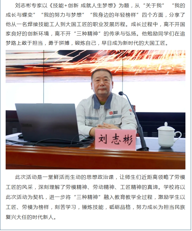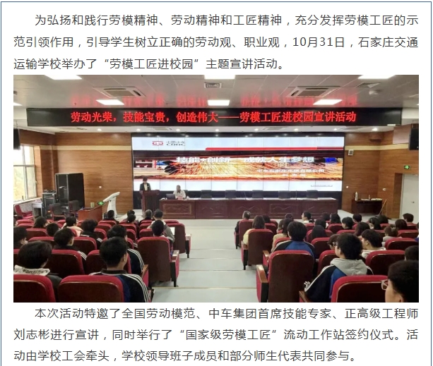 石家庄交通运输学校举办劳模工匠进校园宣讲活动