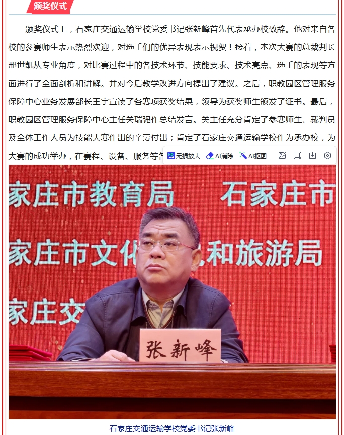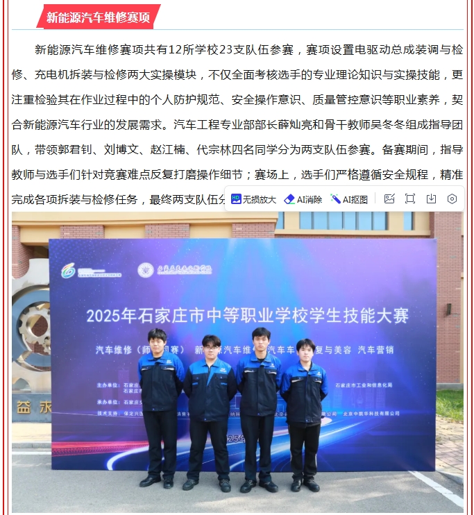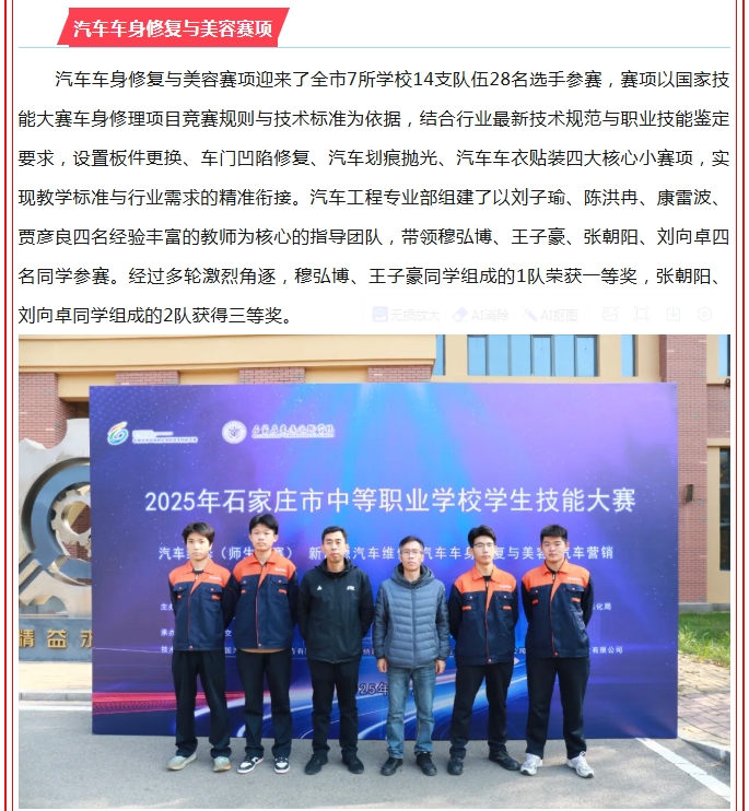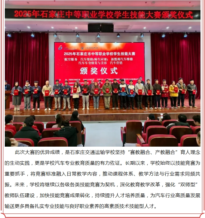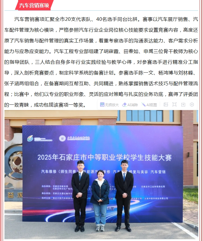 【喜报】市中职学生技能大赛传捷报:石家庄交通运输学校汽车类四赛项尽数摘金