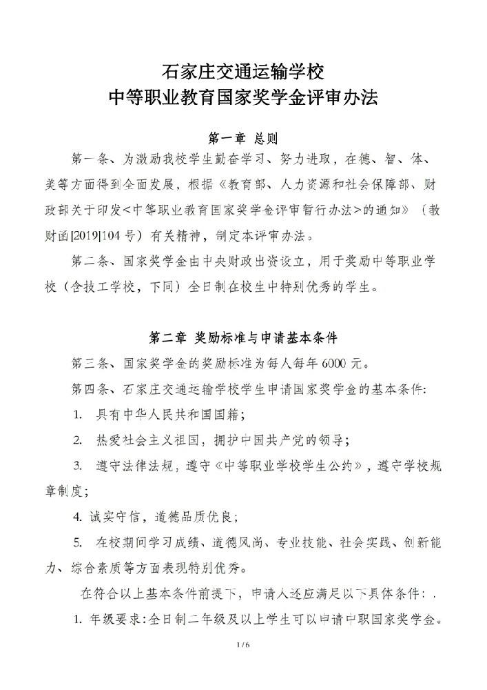 石家庄交通运输学校国家助学金和免学费政策实施办法2021