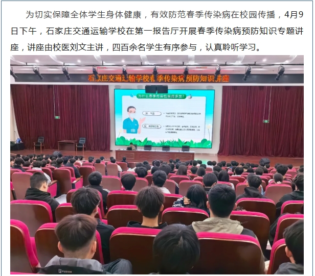 石家庄交通运输学校开展春季传染病预防知识讲座