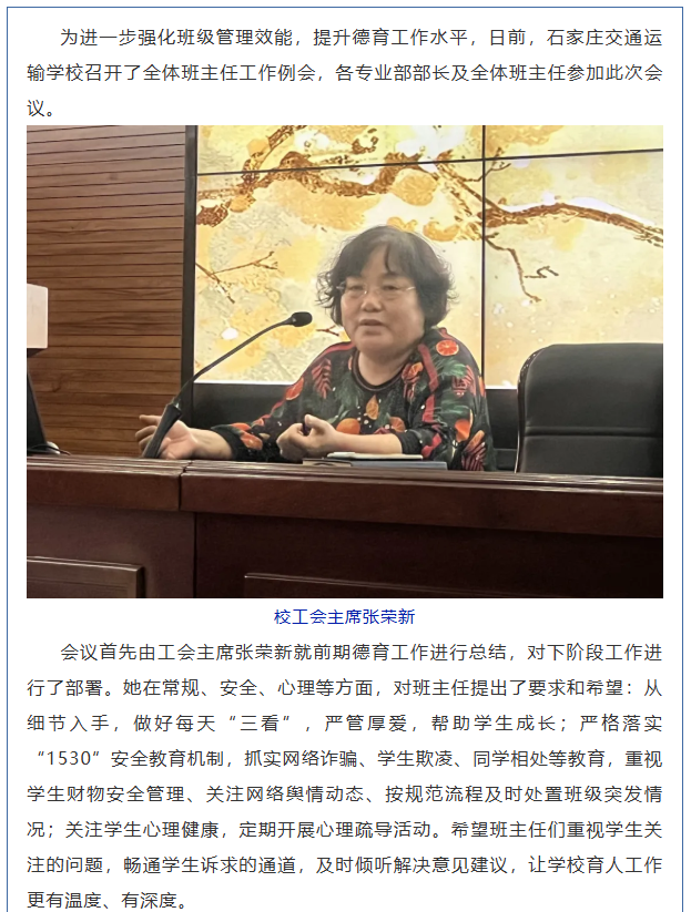 凝心聚力 深耕细作——石家庄交通运输学校召开班主任例会