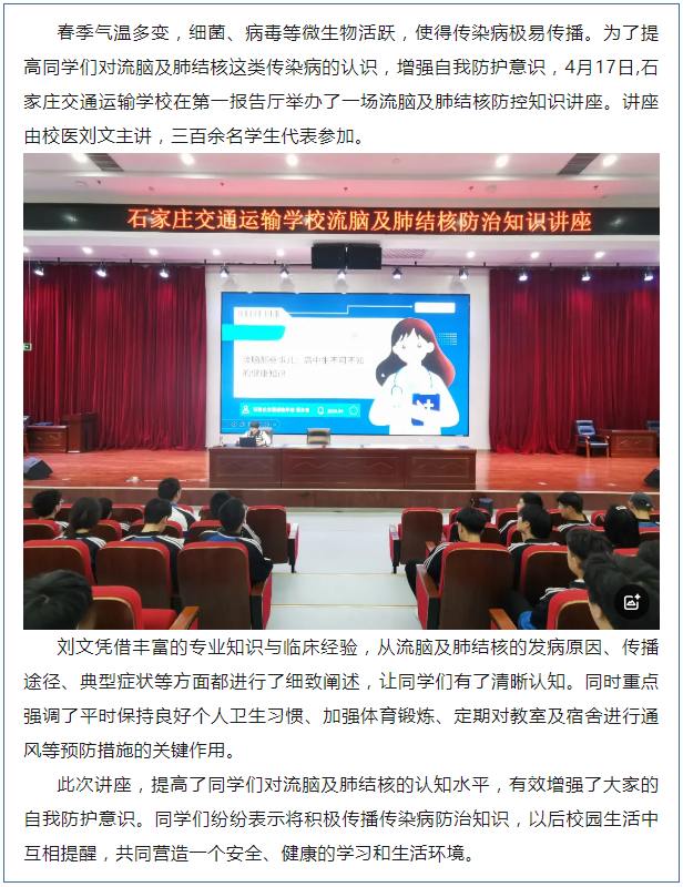 石家庄交通运输学校开展流脑、肺结核防控知识讲座
