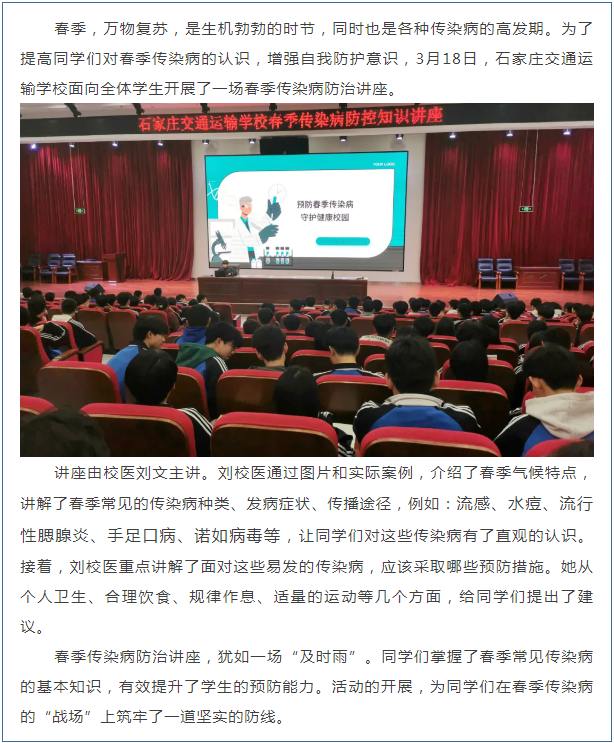石家庄交通运输学校开展春季传染病防治讲座