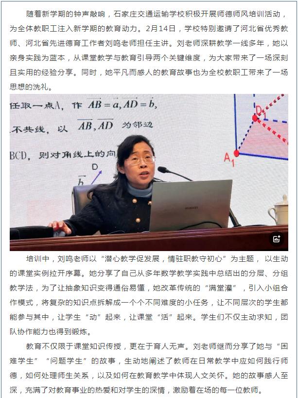 潜心教学,情驻初心——石家庄交通运输学校开展师德师风培训