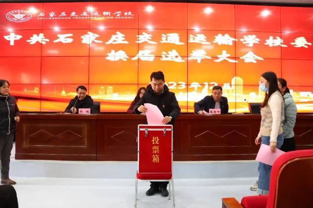 12月27日下午,经市委教育工委批准,石家庄交通运输学校召开党委换届选举大会,会议由党委委员、副校长杨城主持,全体党员参加。