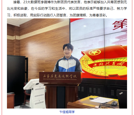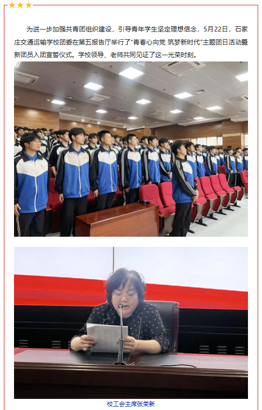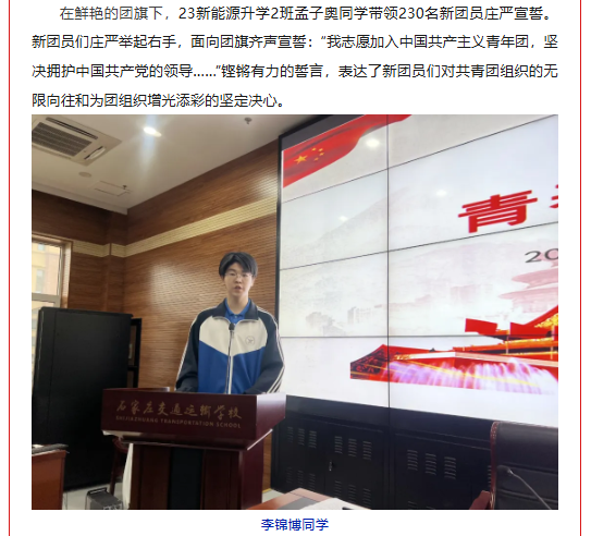 石家庄交通运输学校举行主题团日活动暨新团员入团仪式