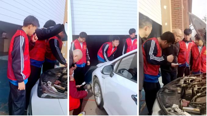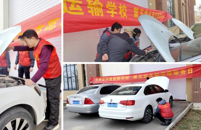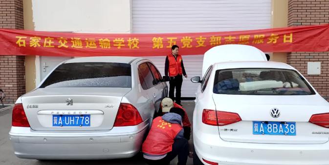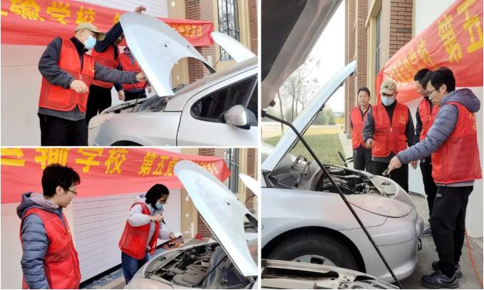 第五党支部大多由汽车工程部的党员教师们组成,因此该支部依托专业优势为全校教师的汽车提供轮胎检测充气、发动机机油、刹车油、防冻液、玻璃水等一系列检查服务。并且在专业课教师的指导下,该专业部的学生们也加入到此次的志愿服务中。他们不怕脏不怕累,师生之间相互合作、合理分工、积极配合,依靠自身专业知识与技能对汽车进行检查与维修,这些身穿红色志愿马甲的身影构成了校园里一道亮丽的风景。