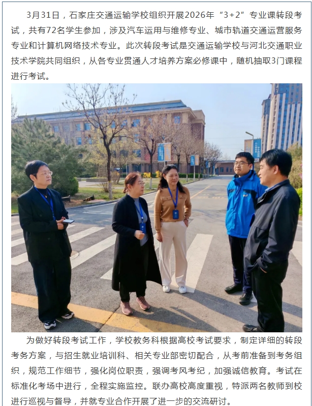 石家庄交通运输学校组织开展2026年中高职“3+2” 贯通培养专业课转段考试